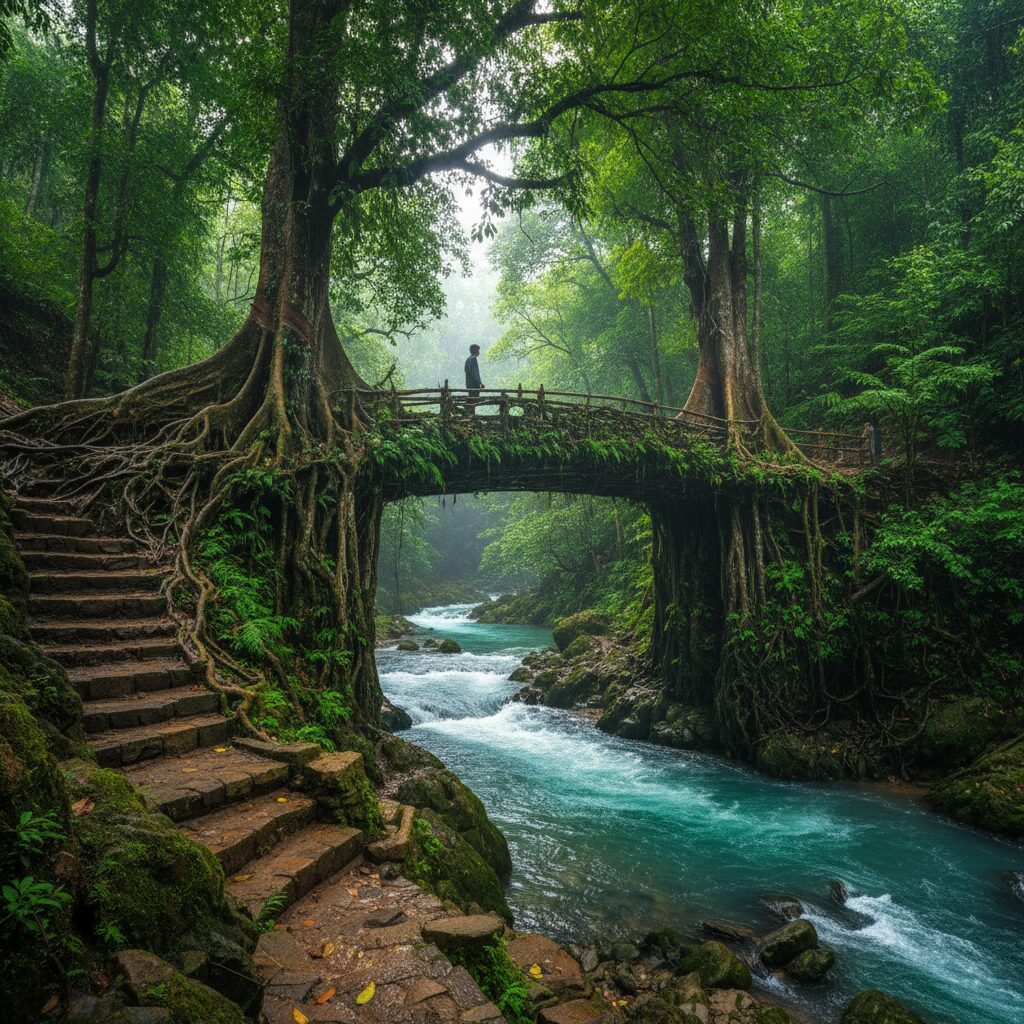 印度梅加拉亚邦的奇迹:活根桥——百年编织,人与自然的共生诗篇