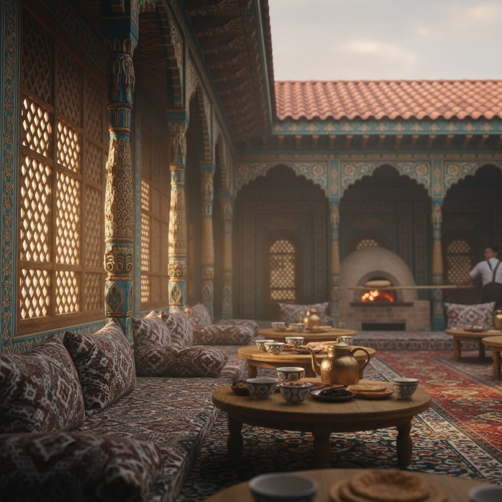 当飞机的舷窗外,那片赭黄与蔚蓝交织的大地缓缓铺开,我的心脏便开始与一种古老的韵律共振。这里是乌兹别克斯坦,一个名字里就回响着丝绸之路驼铃声的地方。撒马尔罕的穹顶如青金石般闪耀,布哈拉的宣礼塔在暮色中切割出神圣的剪影,希瓦的土城在晨曦中泛着金黄的光芒。然而,穿梭于这些宏伟的历史遗迹之间,我内心深处始终在寻觅一个更能触摸此地脉搏的所在——一个能让我从游客的身份中暂时抽离,真正沉浸于当地人生活节奏的地方。直到我推开第一扇雕花木门,闻到那股混合着绿茶清香、烤馕暖香与人间烟火气的独特芬芳时,我找到了答案。它就是“茶馆”(Chaikhona),乌兹别克斯坦的灵魂客厅,一个承载着日常悲欢、社交智慧与千年传统的温情宇宙。