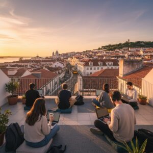 当大西洋的风卷起七丘之城的古老尘埃,当古老的黄色电车叮叮当当地穿行于窄巷,当法朵(Fado)的忧郁旋律从阿尔法玛(Alfama)的酒馆里飘出,里斯本便以一种无可抗拒的姿态,捕获了每一颗渴望自由与灵感的灵魂。这里,阳光慷慨地洒落,将每一块葡式碎石路(Calçada Portuguesa)都映照得熠熠生辉;这里,历史与现代交织,古老的城堡与前卫的涂鸦艺术隔街相望。这片沐浴在金色光辉中的土地,不仅是航海家的起点,如今更成为了全球数字游民的向往之地。它以其独特的魅力,一种融合了悠闲生活节奏、深厚文化底蕴与蓬勃创新精神的奇妙气质,吸引着世界各地的远程工作者前来,将笔记本电脑的敲击声,融入城市古老的脉搏之中。