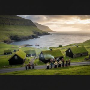 法罗群岛的魅力在于其未经雕琢的原始美感。而点缀于这幅壮丽画卷中的草皮屋村落,恰似童话书中走出的场景,为这片土地增添了无尽的诗意与温情。每一个村落都各有风情,每一次探访都是一场与历史和自然的深刻对话。