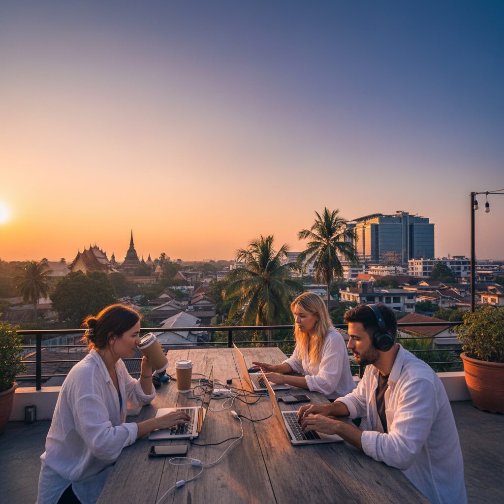 当“远程办公”从一个前卫概念化为日常现实,世界的版图在我们脚下悄然重绘。有一座城市,它的名字在数字游民的社群中如同一句温暖的密语,被反复提及,充满了向往与亲切。它便是泰北的玫瑰——清迈。这里,古老的庙宇与现代的咖啡馆并肩而立,稻田的清香与代... -