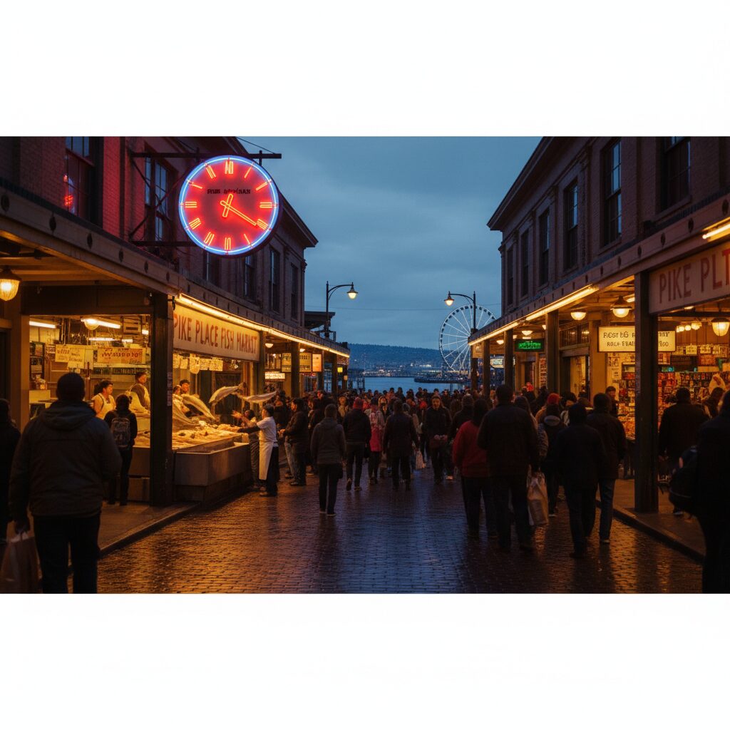 当太平洋的微风拂过普吉特海湾,携带着一丝咸湿的海洋气息与常绿森林的沉静芬芳,轻轻唤醒了这座被誉为“翡翠之城”的西雅图,城市的灵魂——派克市场(Pike Place Market)也随之睁开了惺忪的睡眼。这里不单是一个市集,它是西雅图历史的年轮,是城市文化的熔... -